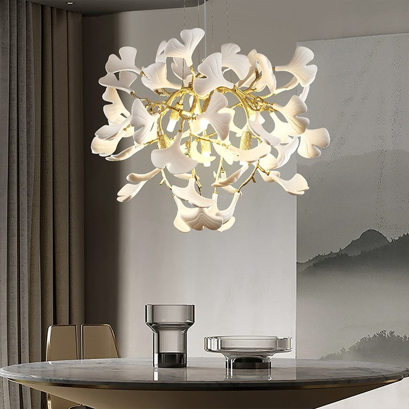 Ceramic Ginkgo Gold Tree Branches Chandelier$396.00 USD