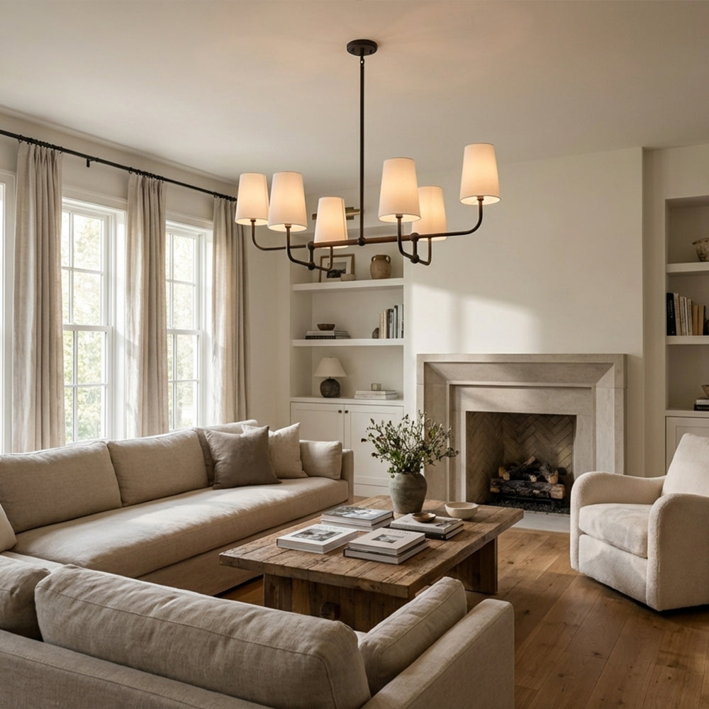 Bedroom/Living Room: Place the chandelier in the middle of the room or above a bedside or coffee table.