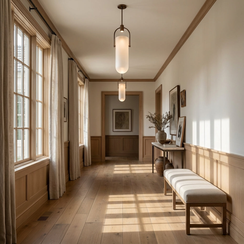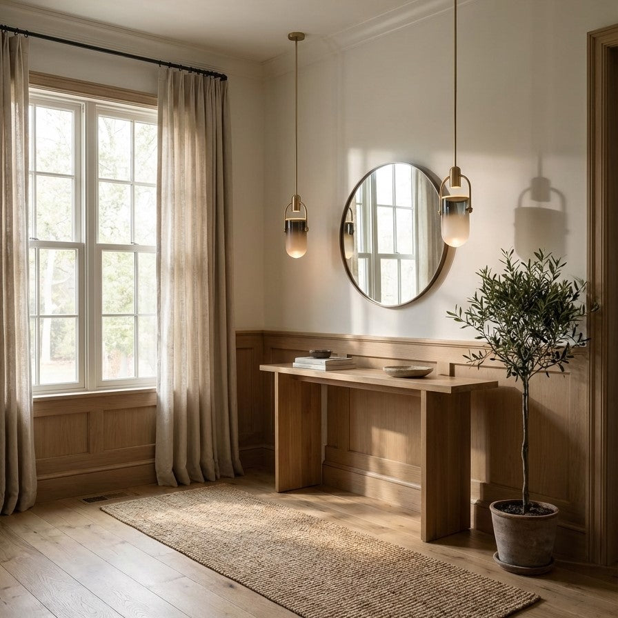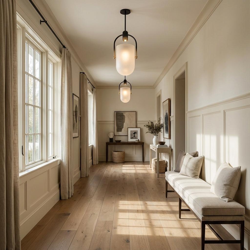 Entryway: Center the chandelier in the middle of the space.