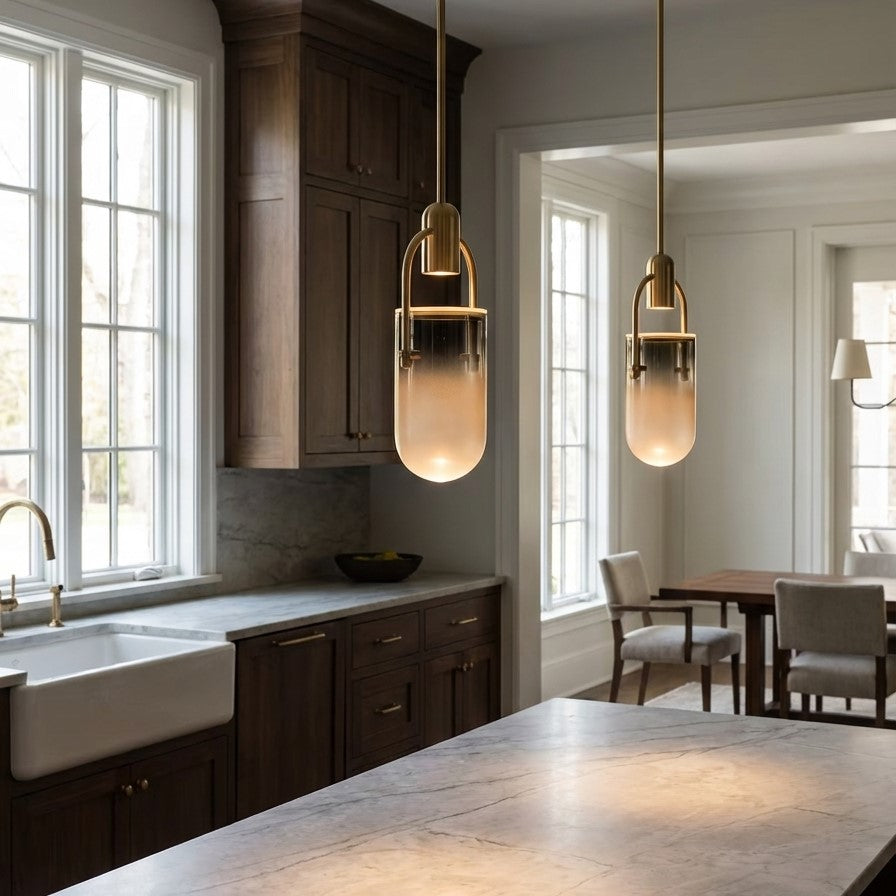 Hanging Height: The bottom of the chandelier should hang 30" - 36" above the countertopWhere to Hang: Center the chandelier in the middle of the island.