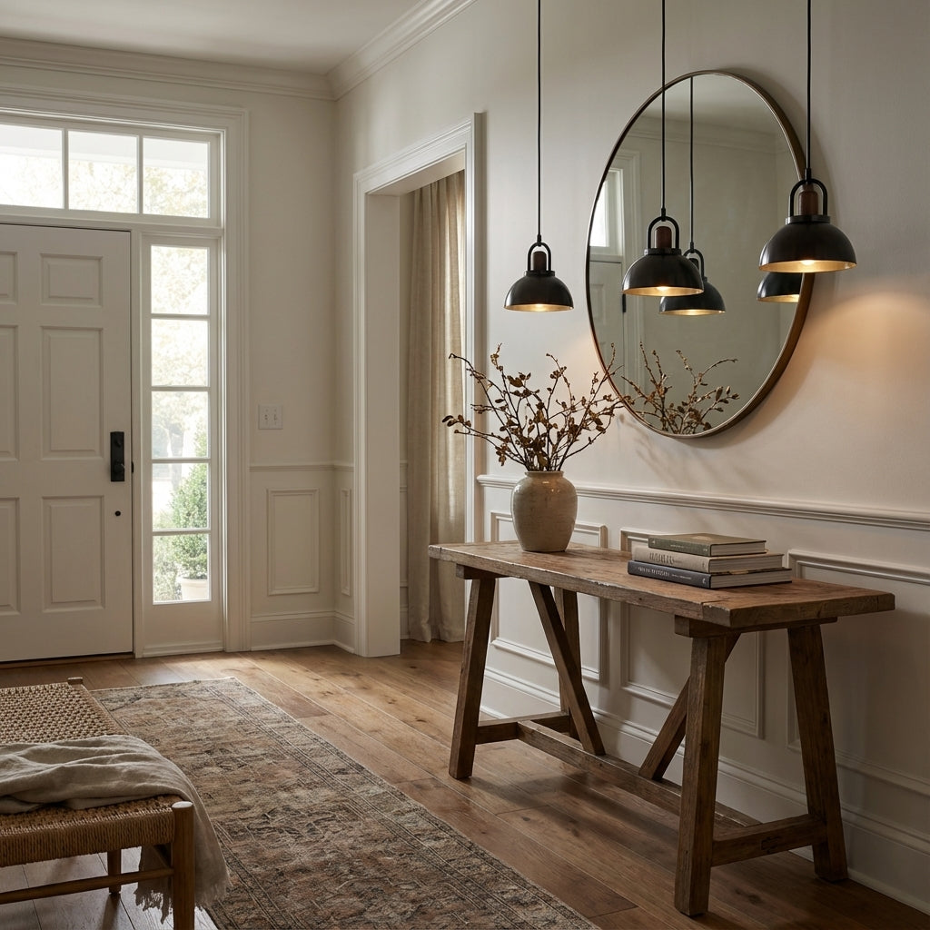 Entryway: Center the chandelier in the middle of the space.
