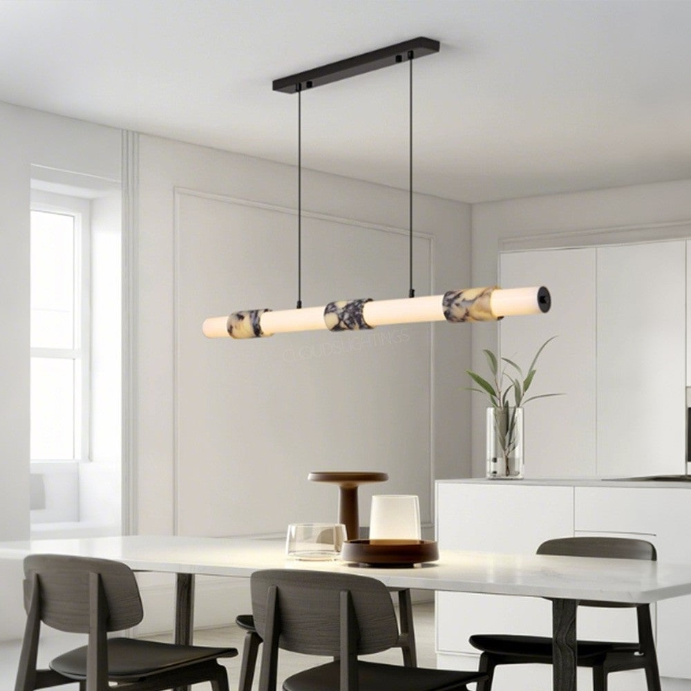Our Bulgari-style light—where luxury meets functionality. Crafted with high-grade marble, it exudes understated elegance that complements modern and upscale interiors seamlessly. The sleek linear design perfectly fits long dining tables, casting soft, flicker-free LED light to enhance mealtime ambiance. Energy-efficient and dimmable (compatible with most dimmer switches), it balances practicality with sophistication. Ideal for dining rooms, luxury homes, or boutique restaurants, this pendant lamp blends timeless marble texture with contemporary LED technology, adding a touch of refined glamour to every gathering.