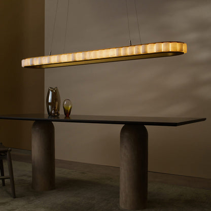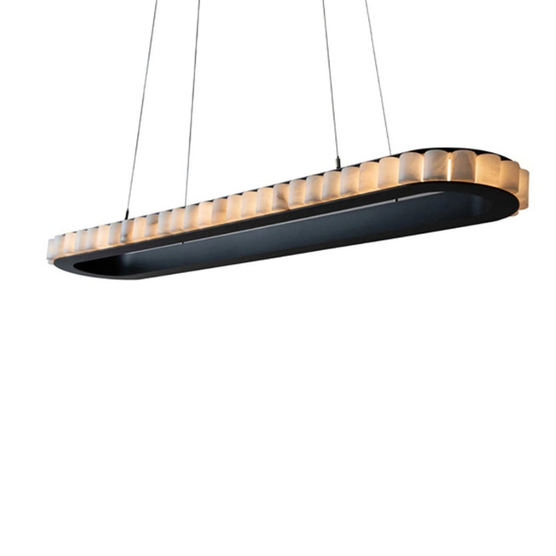This pendant light collection features sleek elongated silhouettes, paired with soft glow stone/light-diffusing panels framed in minimalist metal. The 150cm main fixture suits 80-100cm ceiling plates. Blending understated lines with warm, textured illumination, it balances modern elegance and cozy ambiance—ideal for elevating contemporary interiors with both style and versatility.
