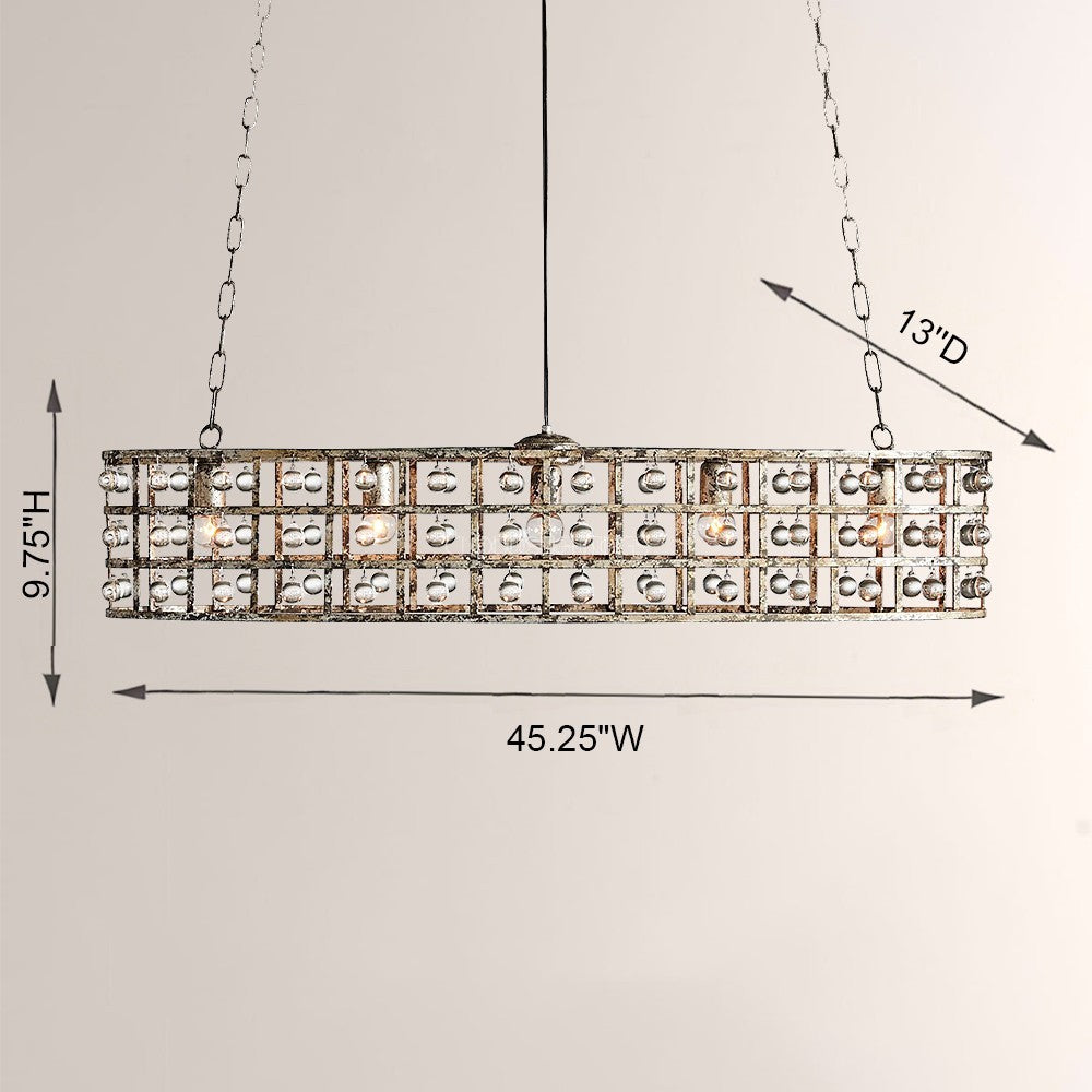 - Iron cage frame features an antiqued metallic finish complemented by Italian crystal spheres.
