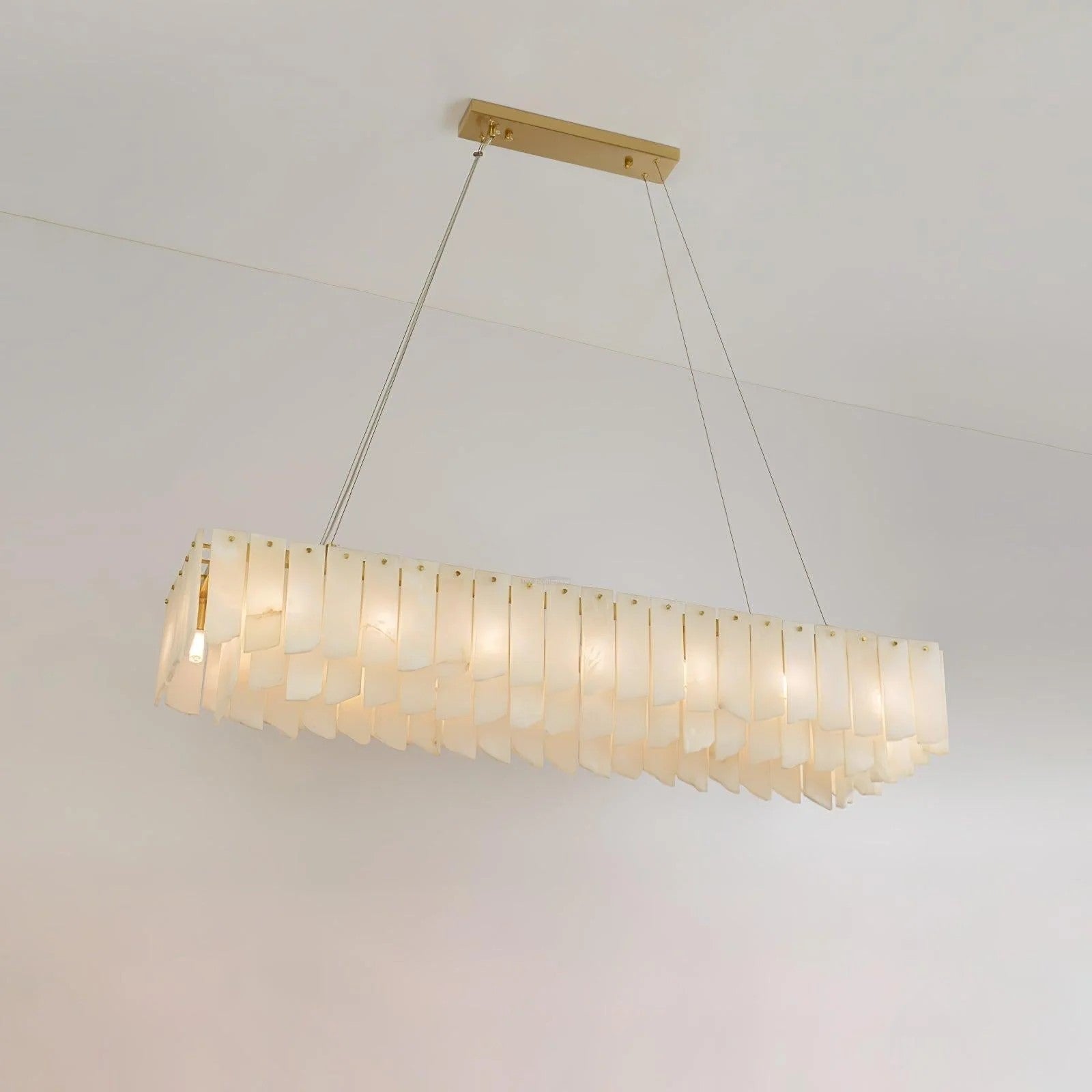The Alabaster Venice Chandelier Collection features circular clusters of veined alabaster panels, paired with sleek metal hardware. Warm light diffuses through the translucent stone, echoing Venice’s iconic luminous elegance. Available in varied round silhouettes (from compact to cascading), it elevates dining rooms or foyers—adding a refined, timeless glow to contemporary American interiors.