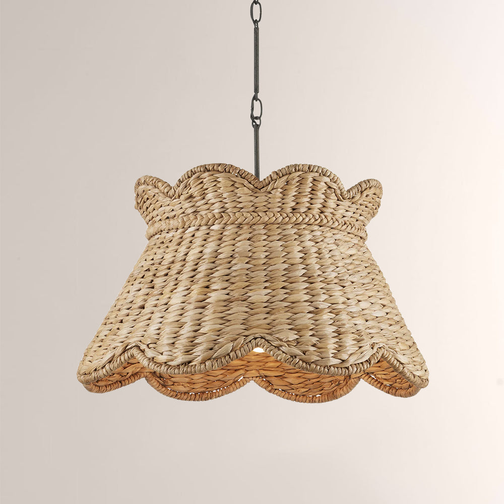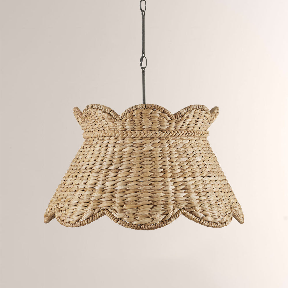 Infuse your space with the Parisian charm of the Annora Pendant. Expertly Artisan-woven from natural water hyacinth,its scalloped drum silhouette offers an organic,tactile luxury.The perfect statement piece for coastal dining islands or sun-drenched breakfast nooks.