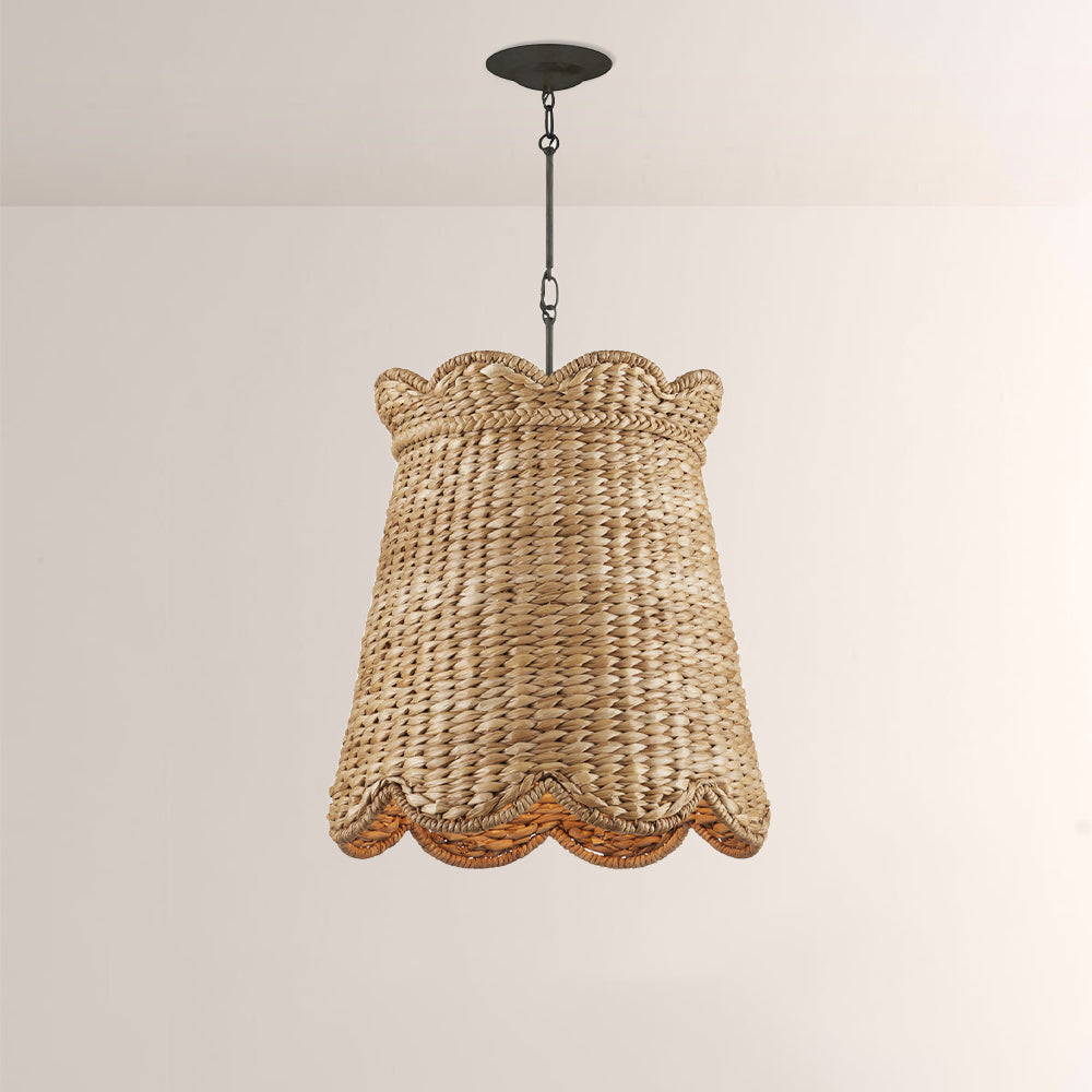 Exquisitely Artisan-woven by master artisans, the Annora Pendant pairs the organic warmth of sustainable water hyacinth with a sleek, hand-forged iron frame. Its tapered conical silhouette and intricate braided detailing bring a refined Parisian flair to any luxury breakfast nook or coastal estate.