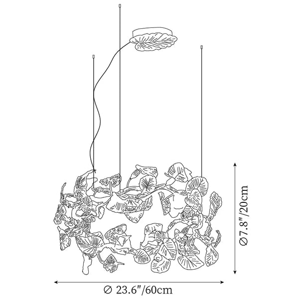 This spectacular chandelier features a gorgeous, innovative design. Each piece from this collection is handcrafted from Copper and glass. Calathea embodies the gentle and delicate movement but is imbued with the vital energy that pervades every element of nature, making it unique.