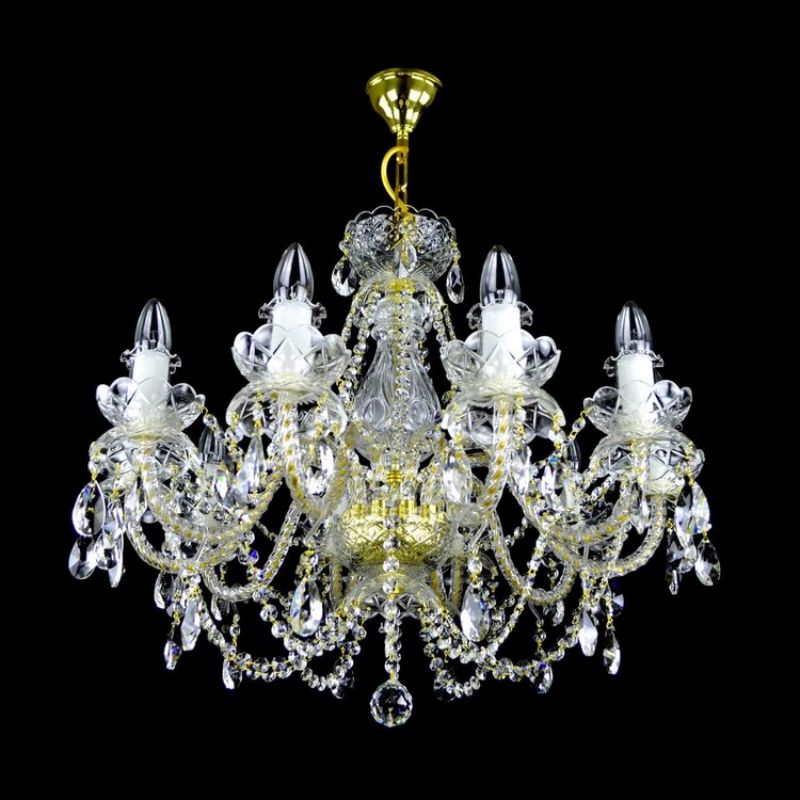 As with all chandeliers, the parts of the De Luxe chandelier are made from the highest quality crystal and brass. The chandeliers are hand-manufactured in the factory in the traditional region without an exception.