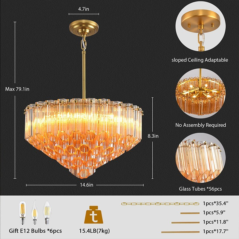 Hexagonal Beveled Glass Round Chandelier 14"D