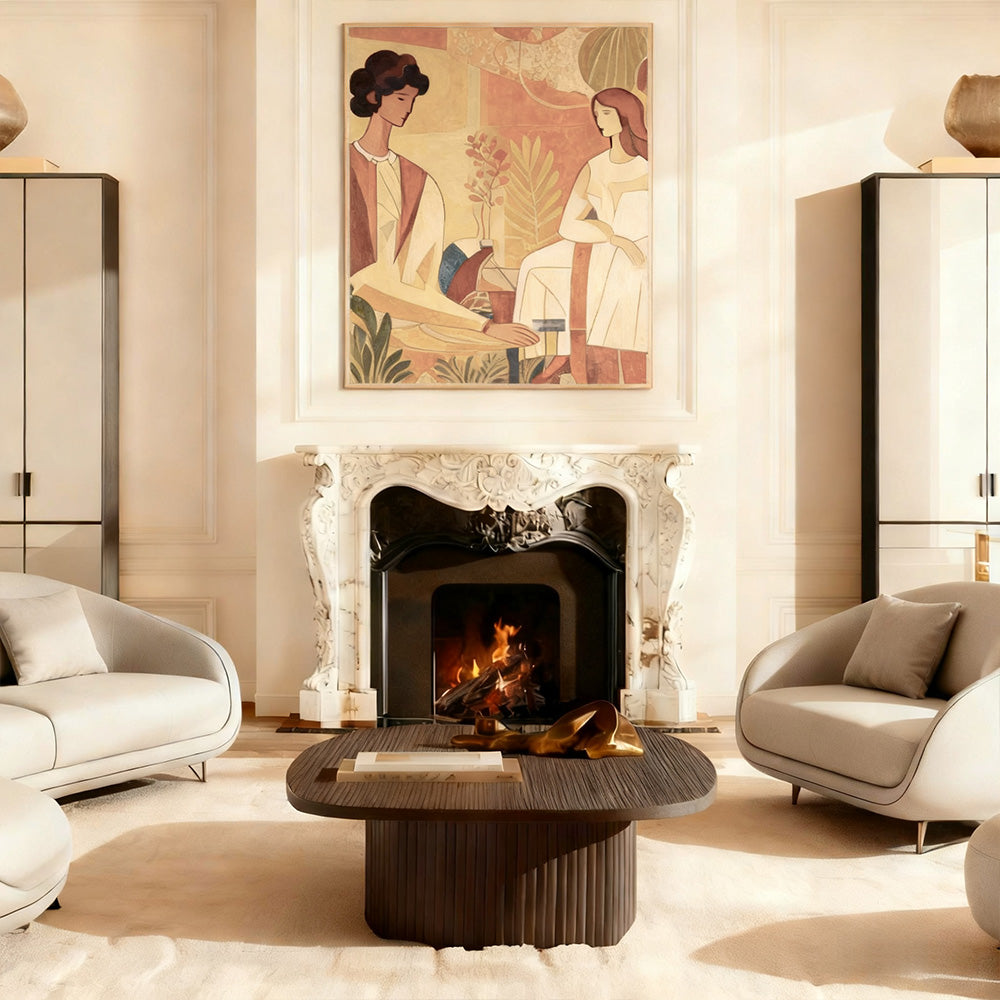 The MulRegal - series round coffee table features a textured wood finish, blending modern minimalism and regal sophistication. It’s an ideal centerpiece for luxury American living rooms, offering a refined focal point with ample surface space and a statement - making design.