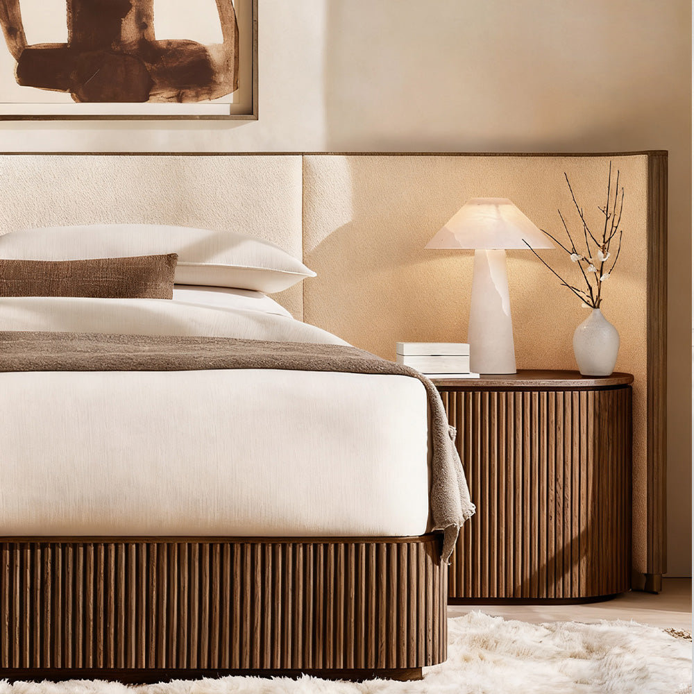 • Vertical surfaces feature solid American white oak reeding