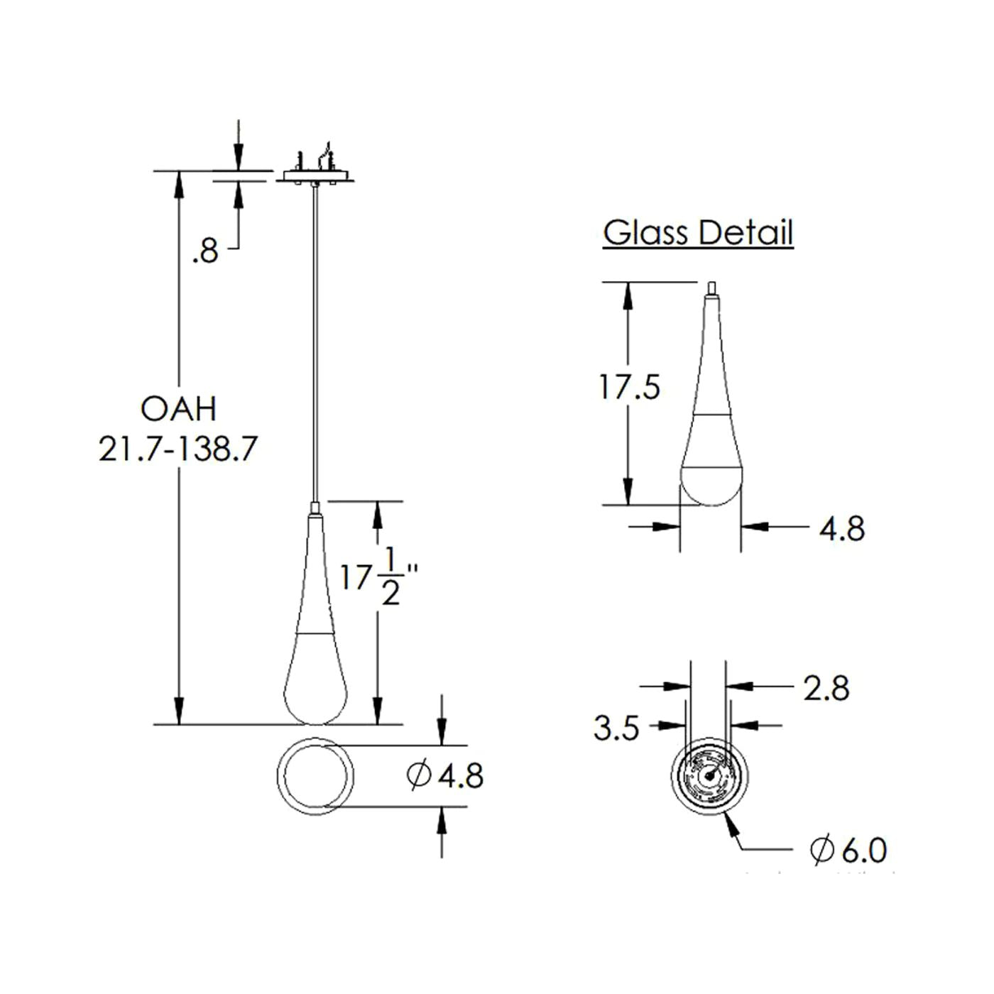 • Pendant Body: 4.8″D X 21.7″H;