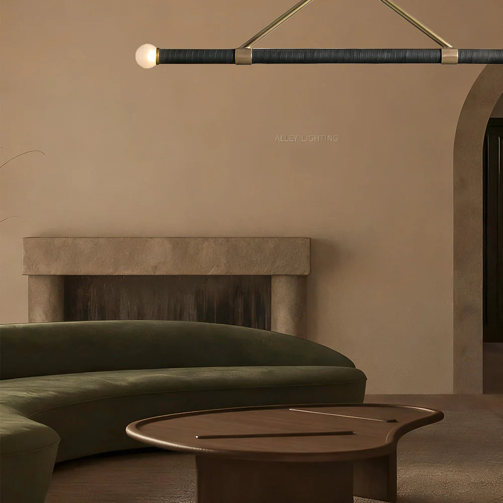 - This exclusive collection is crafted from burnished brass or bronze-plated steel with wrapped leather detailing and two frosted glass globes.