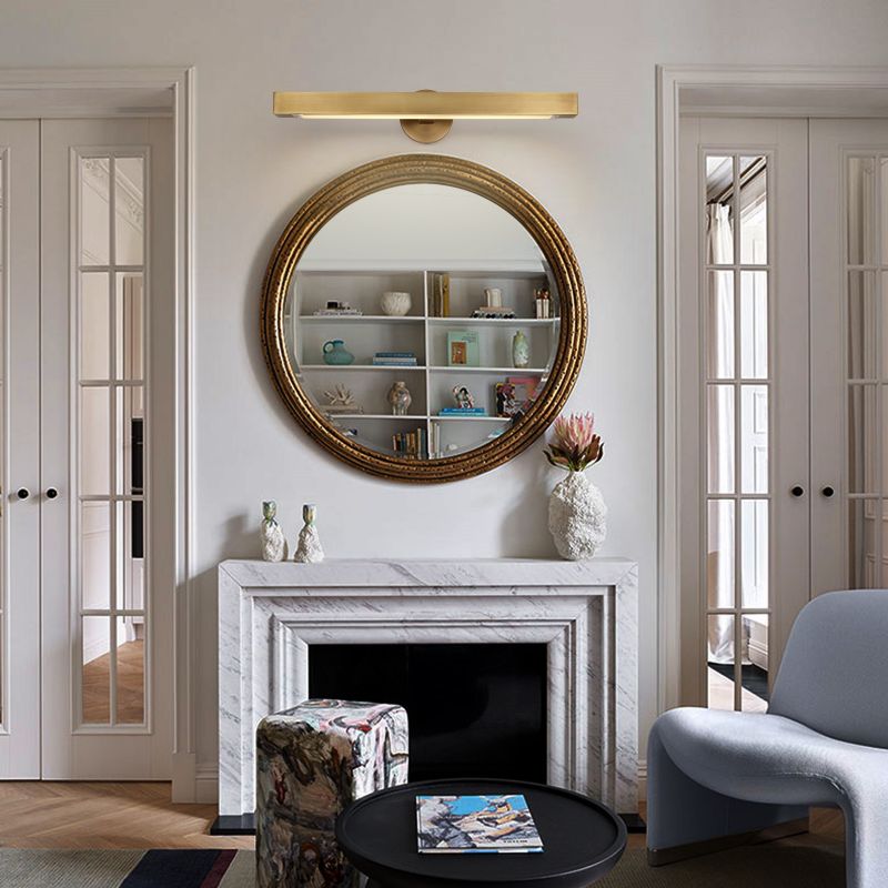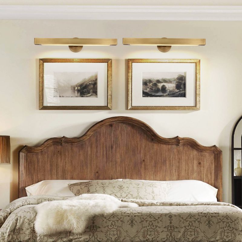 This Led picture light is made of brass with integrated Led panel. The soft lights source gives a focused swath of light.
