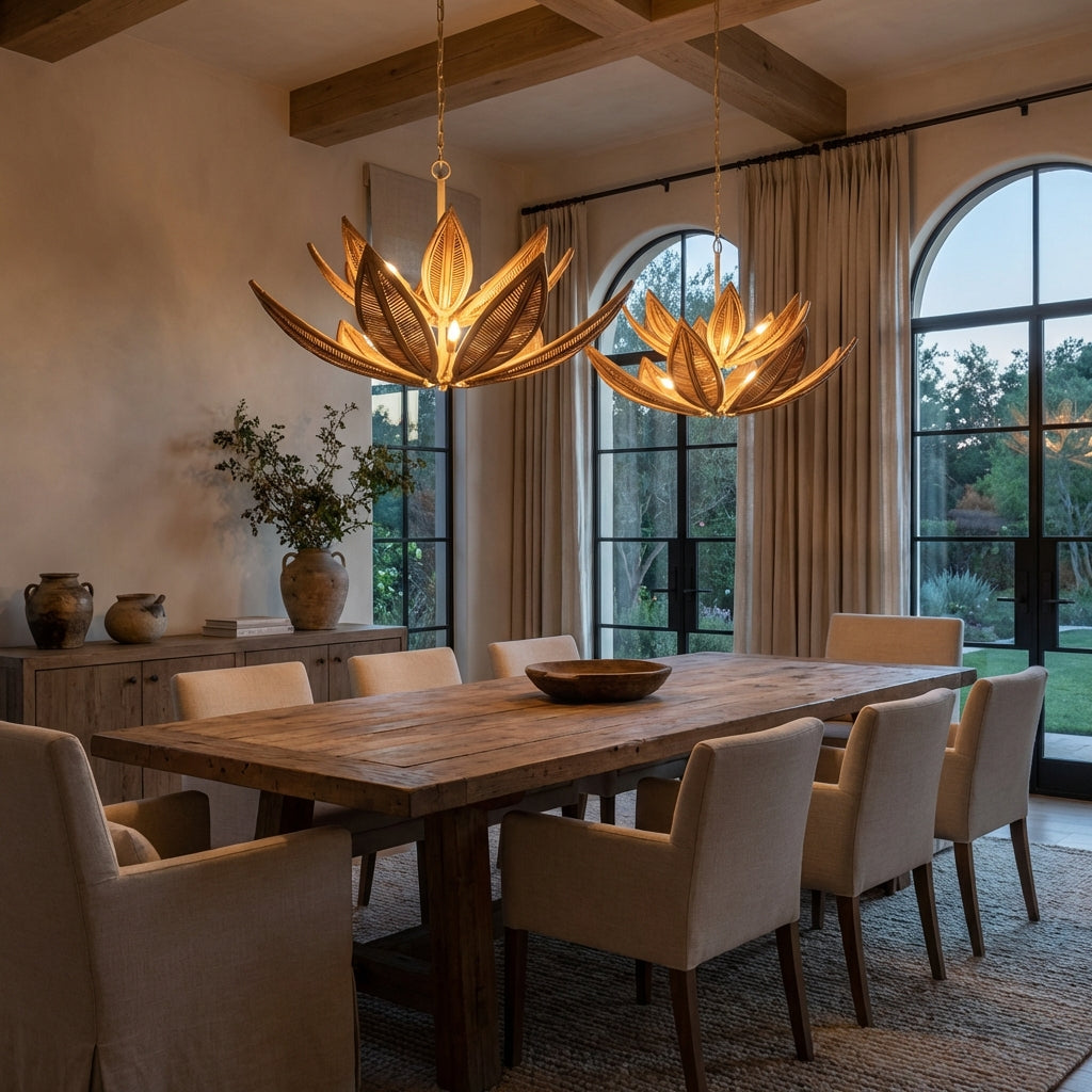Elevate your interiors with the Tropical Grandeur Two-Tier Chandelier. This 40-inch architectural masterpiece features two cascading layers of hand-woven rattan leaves, meticulously crafted to balance organic warmth with a bold, structural silhouette. Designed for sophisticated dining rooms and luxury suites, its tiered open-frame filters light through textured fronds to create an inviting, rhythmic shadow-play. A timeless statement of island-inspired elegance that brings a serene, high-end sanctuary feel to the modern estate.