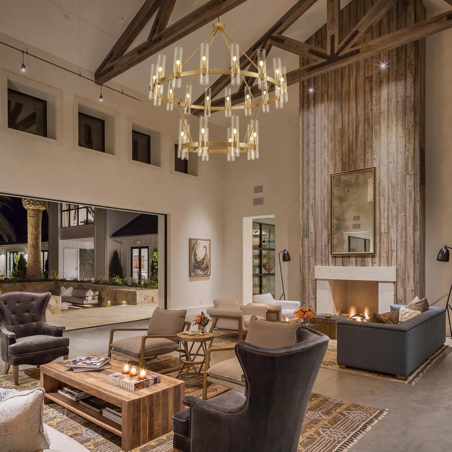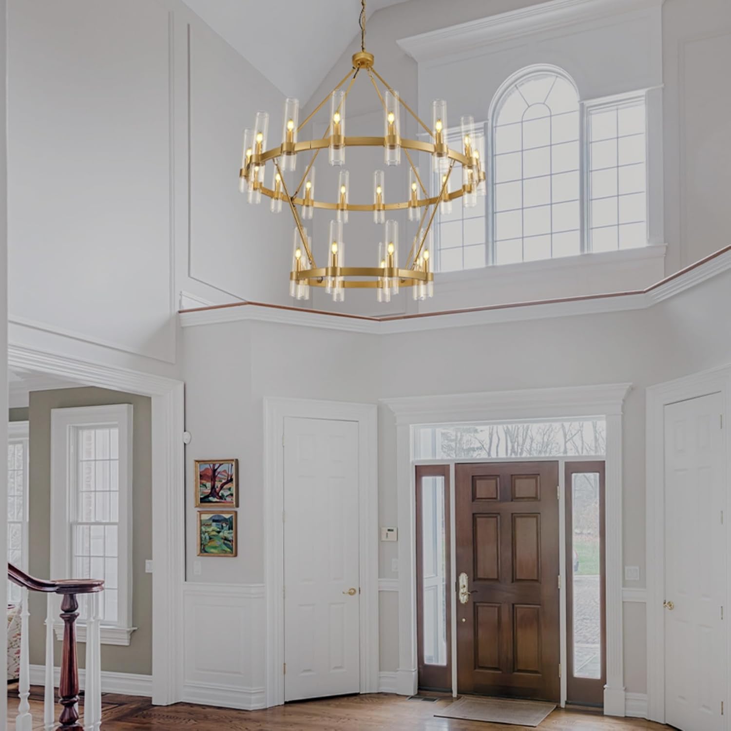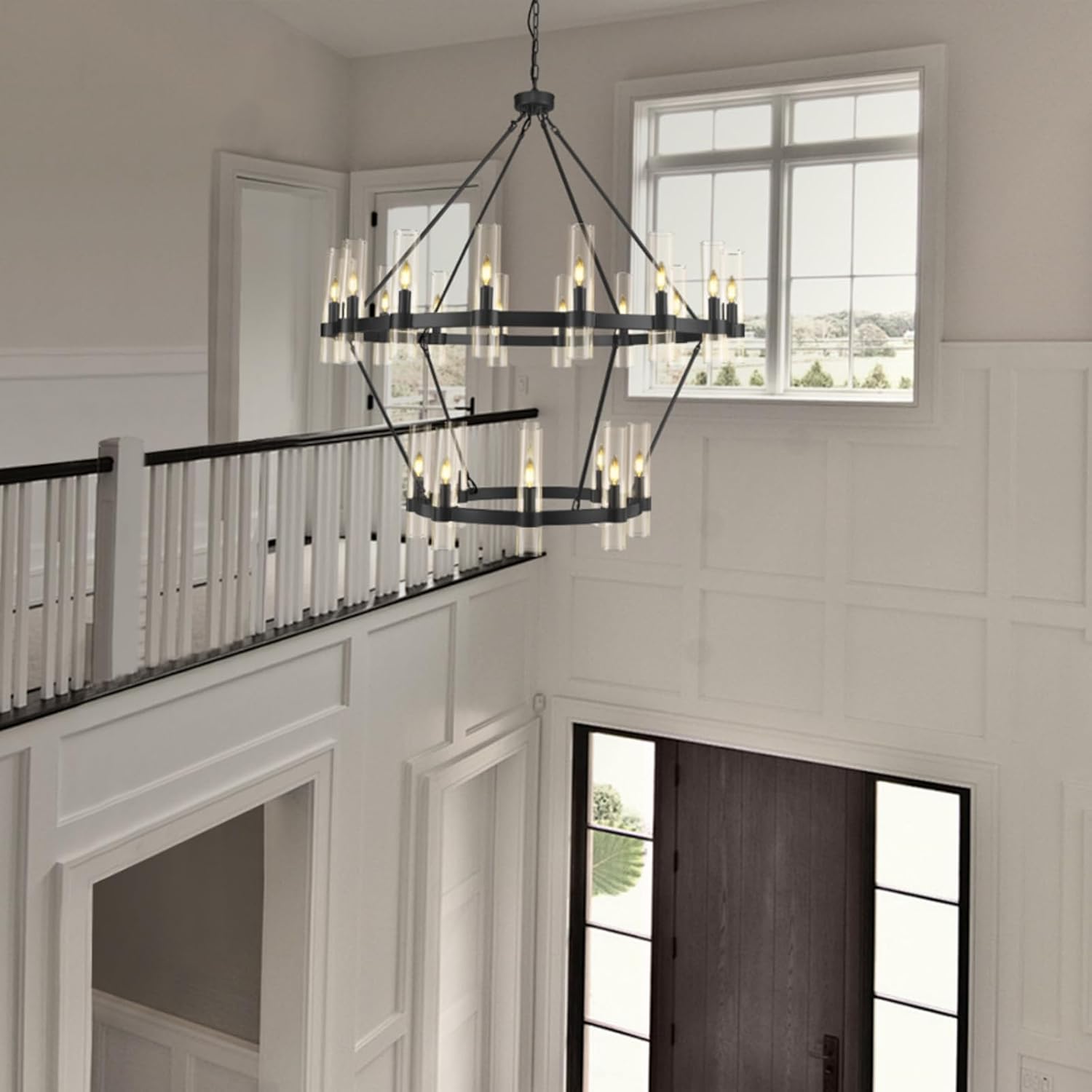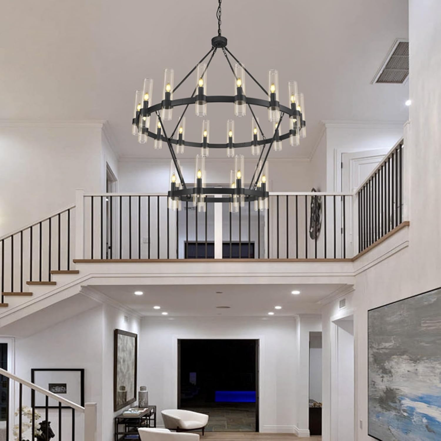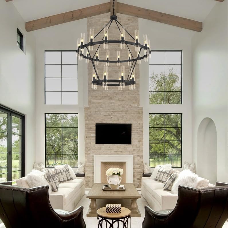 Wagon Wheel Glass Round 2-Tier Chandelier 48‘’