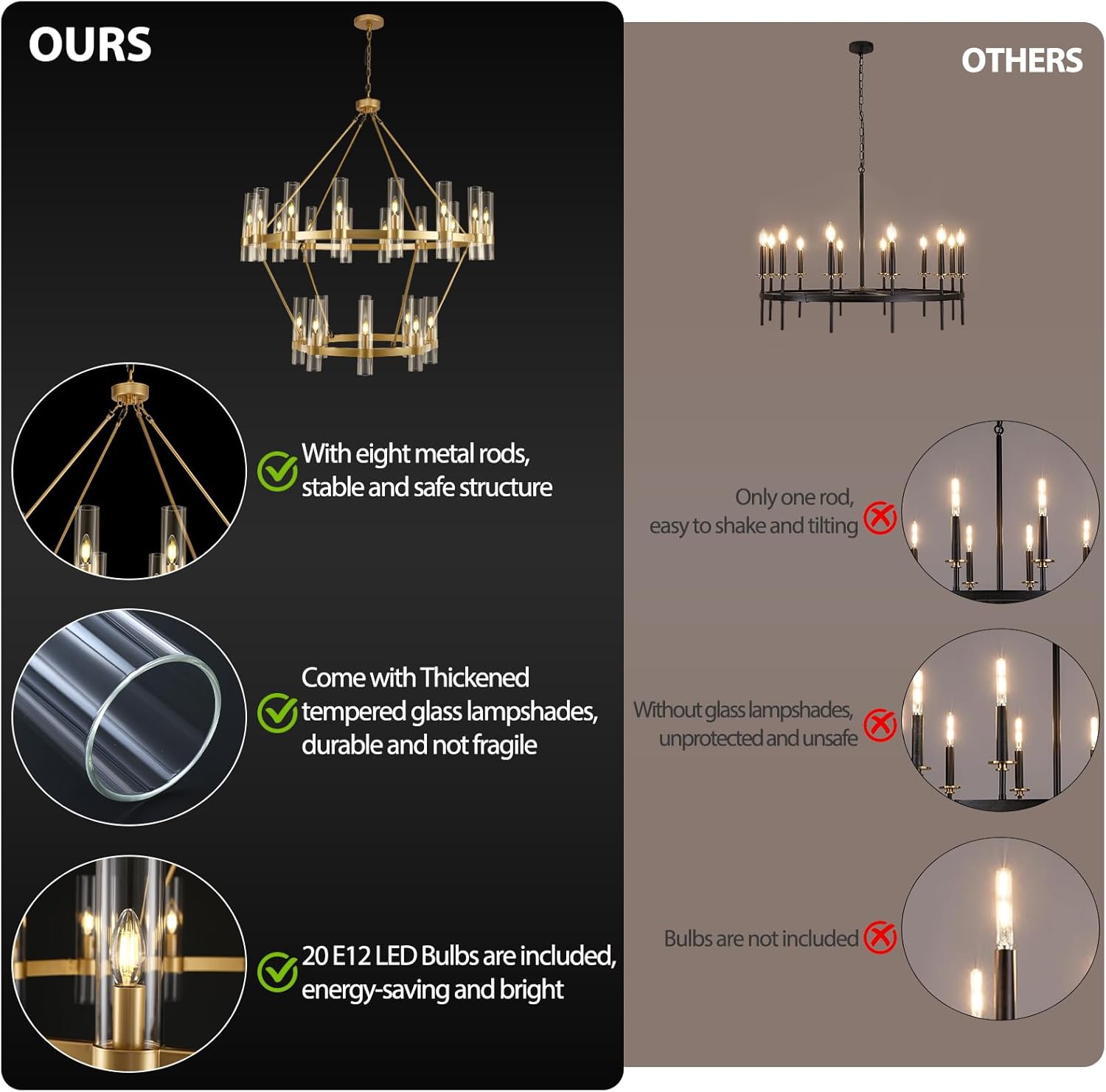 • Light Source: LED E12 Dimmable Bulbs