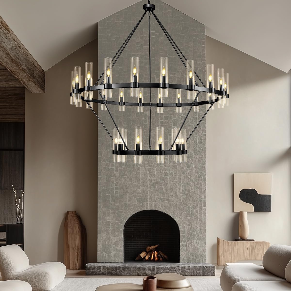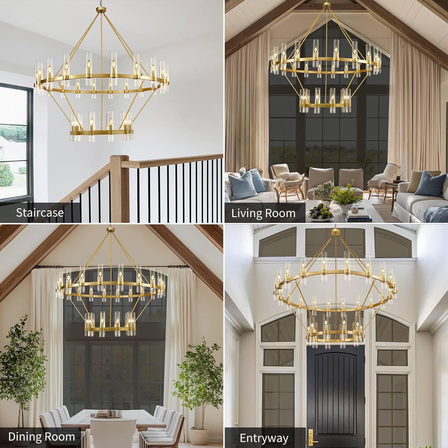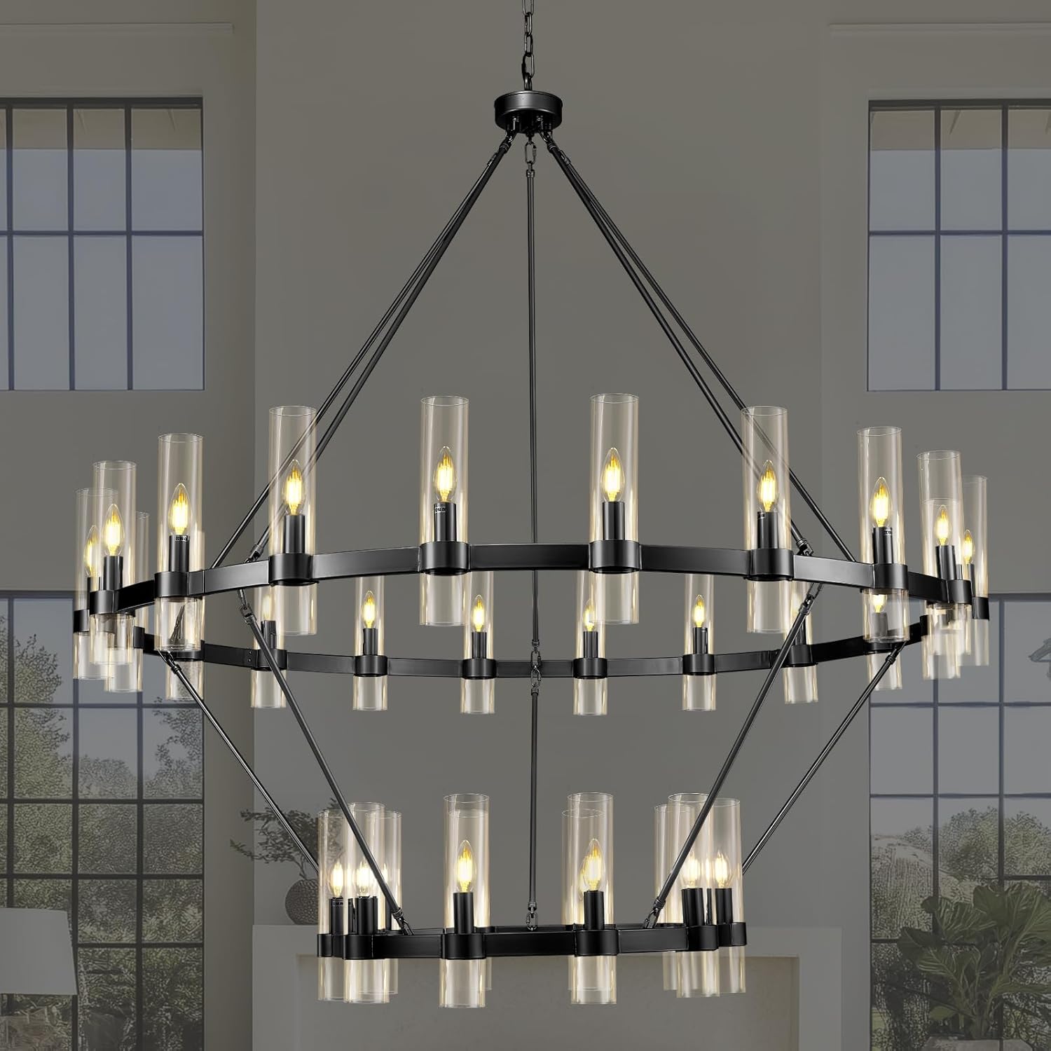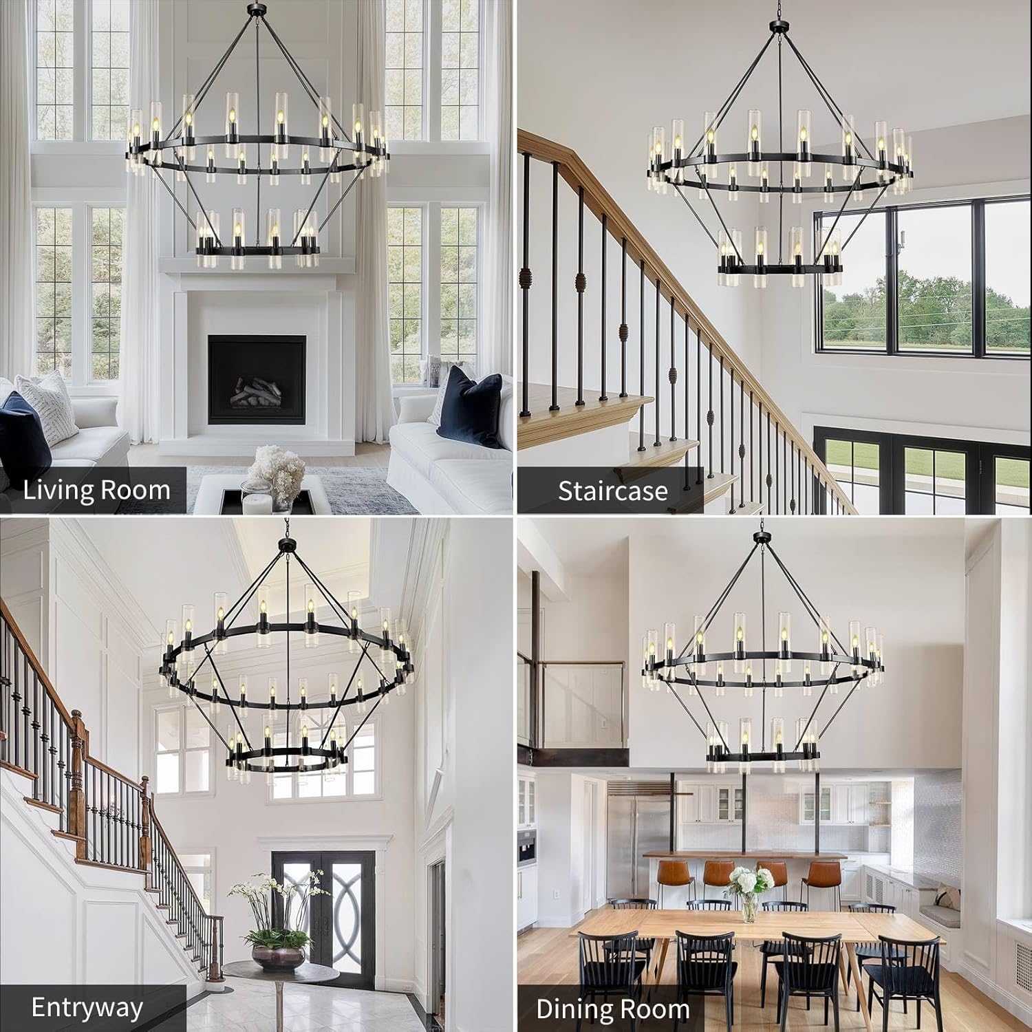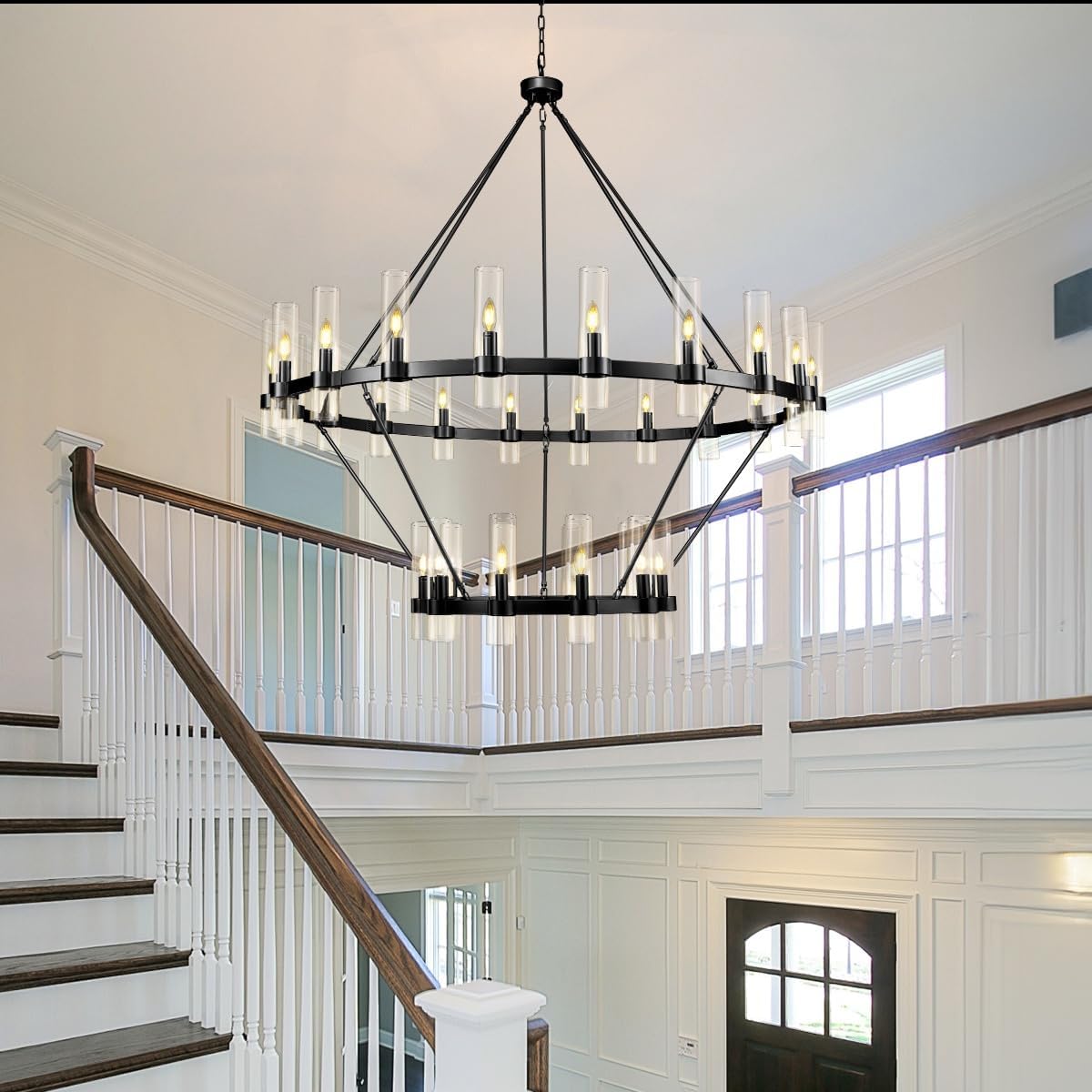 Wagon Wheel Glass Round 2-Tier Chandelier 60‘’