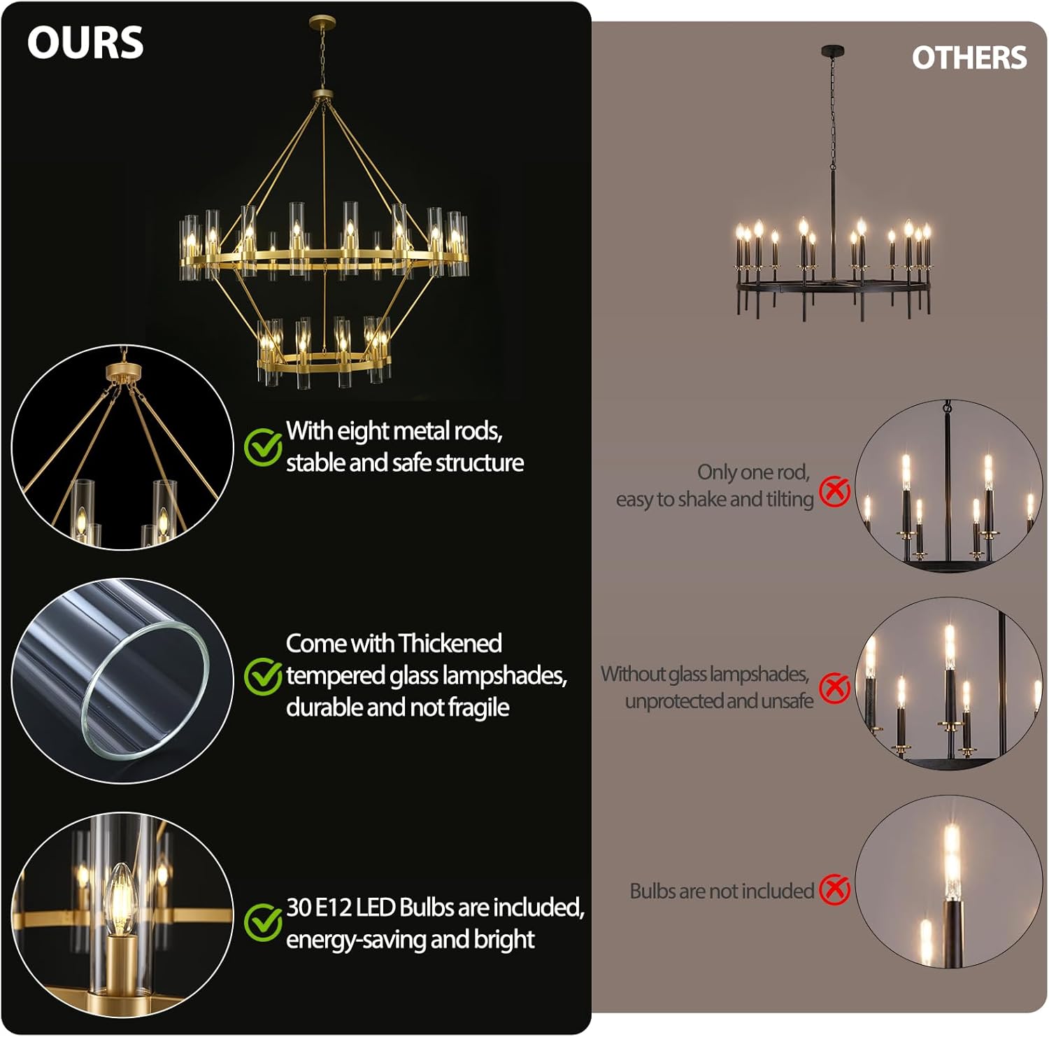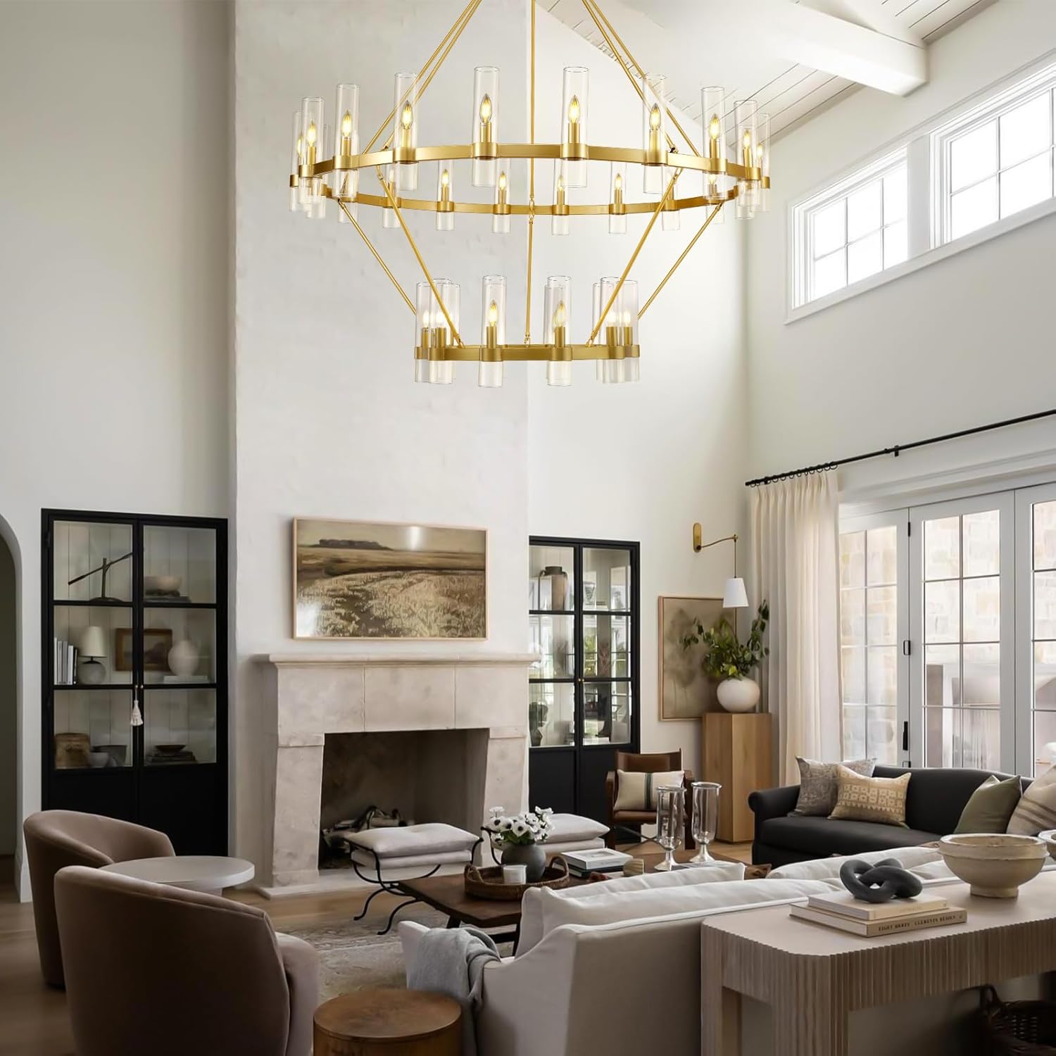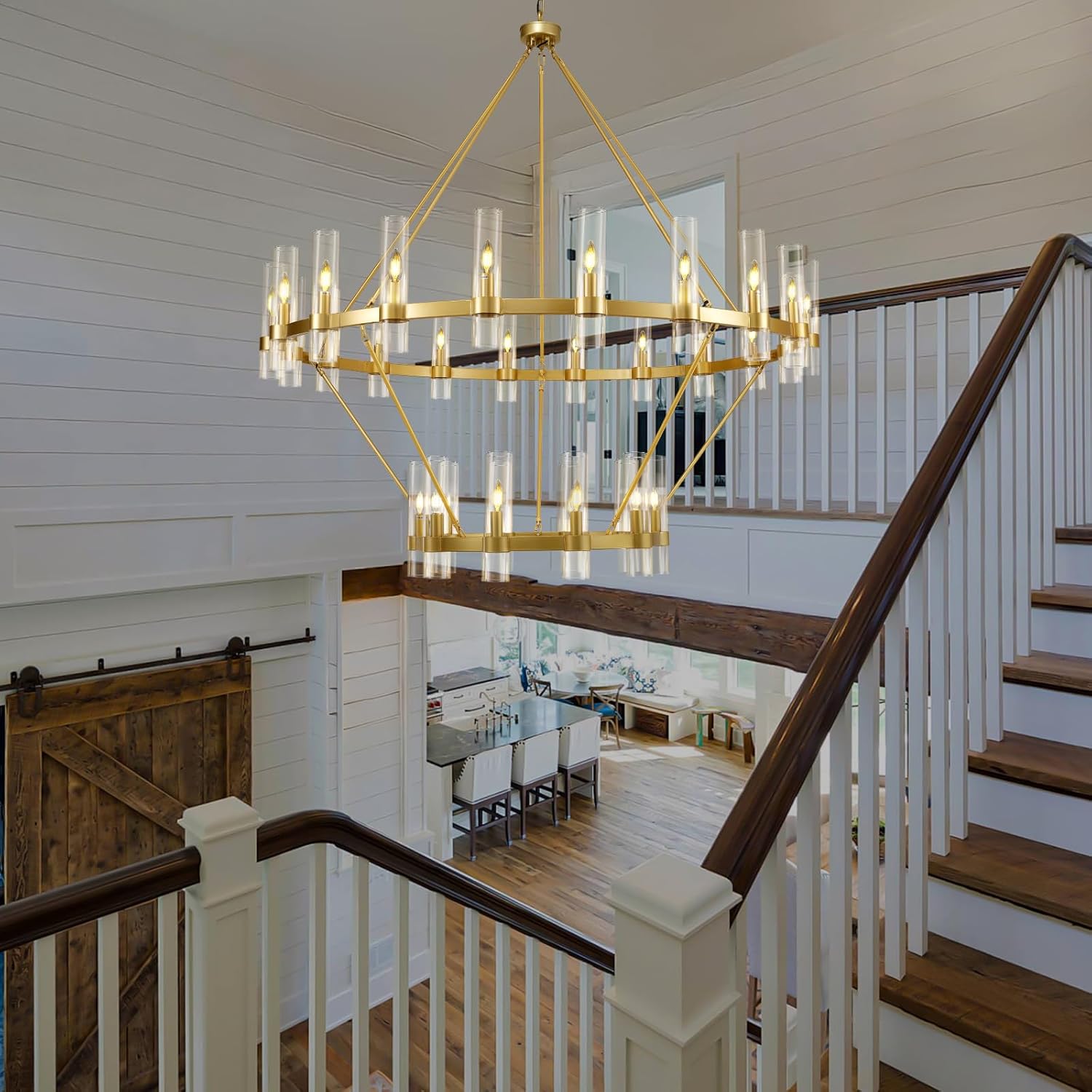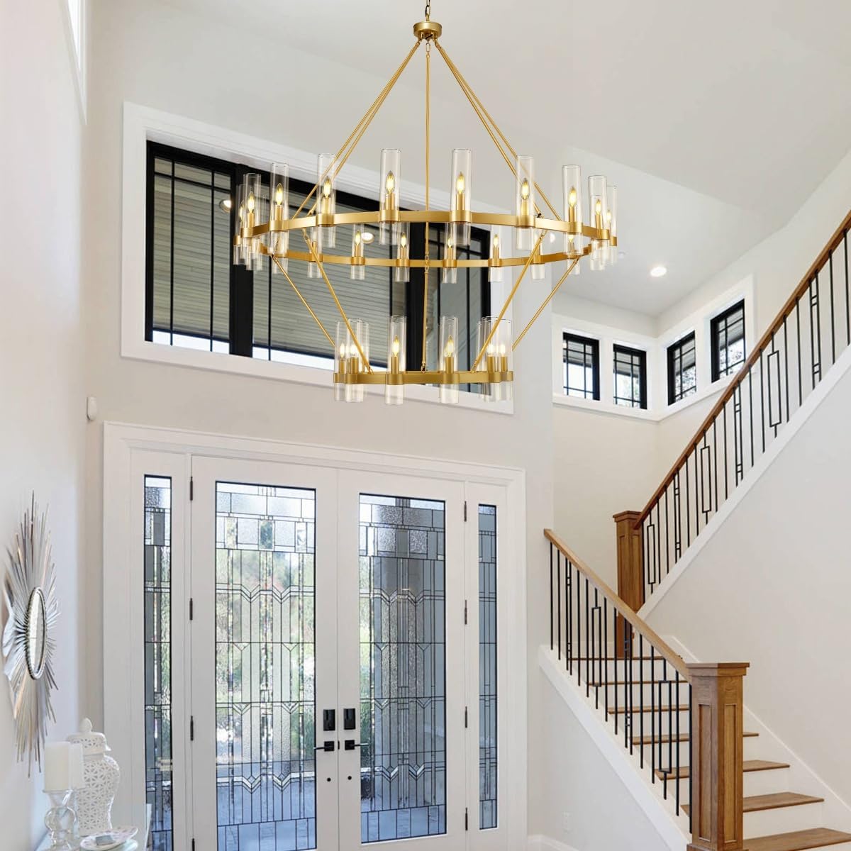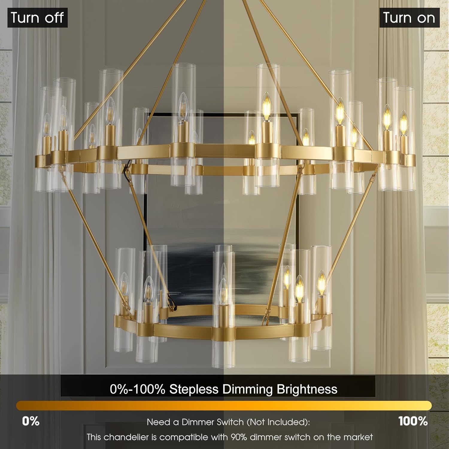 Wagon Wheel Glass Round 2-Tier Chandelier 60‘’