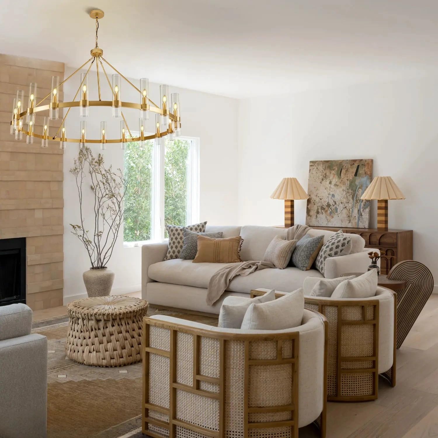 Wagon Wheel Glass Round Chandelier 60‘’