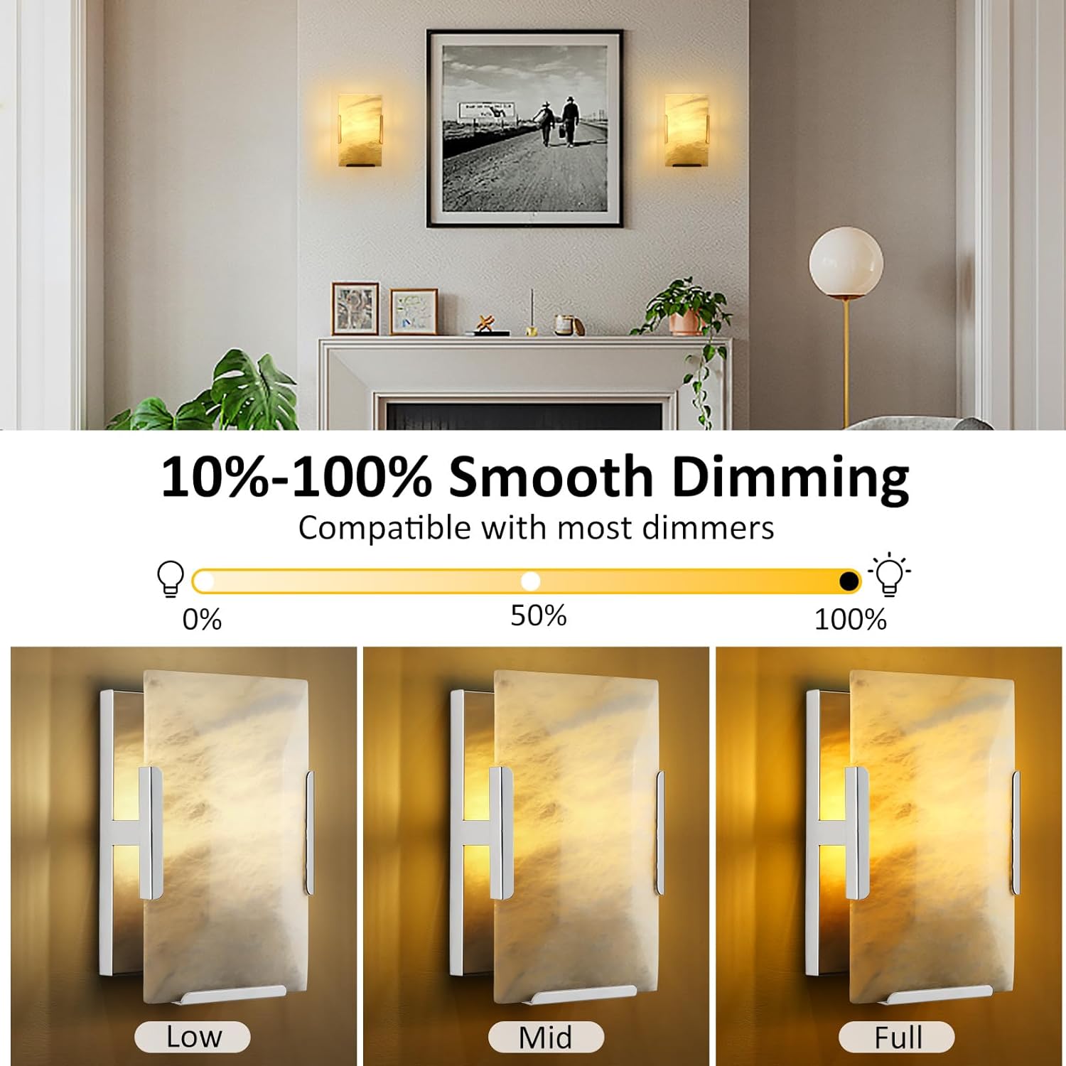 - 【Attention to Detail】This Alabaster wall sconce due to the natural stone taken, received in kind will show different snowflake stone pattern, which is randomly distributed.We give white gloves, please wear gloves gently hold and put.